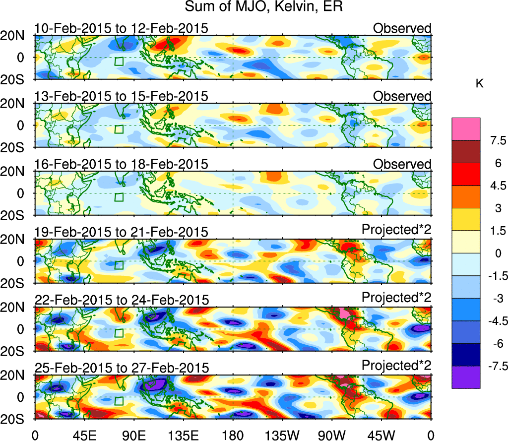 Julian Oscillation (MJO) Blue Eastward 0–9 30–96 n/a Kiladis et al. (2005 JAS)