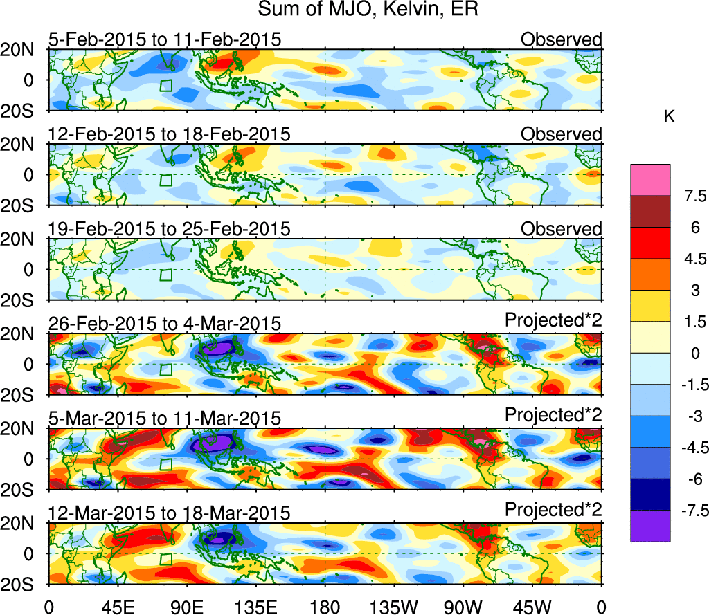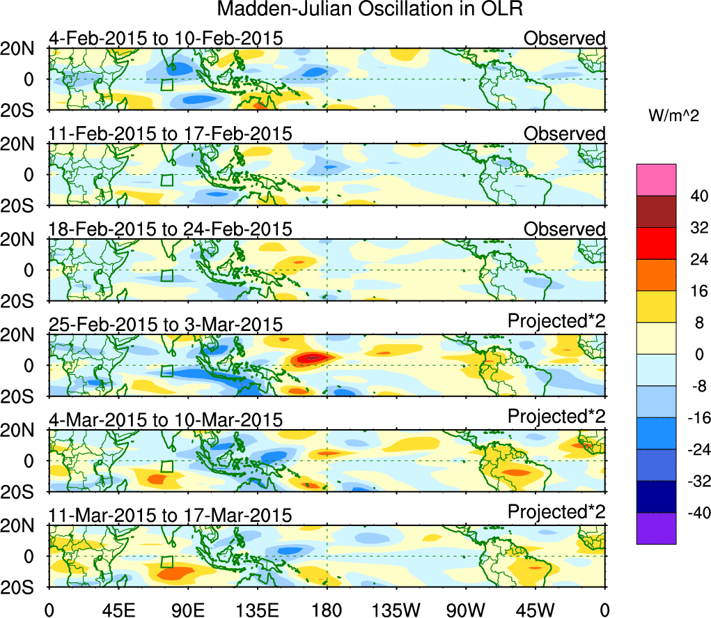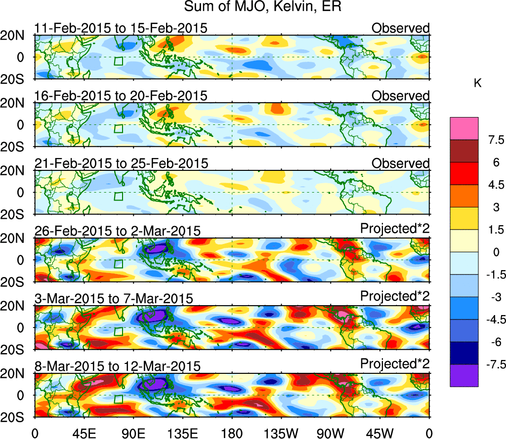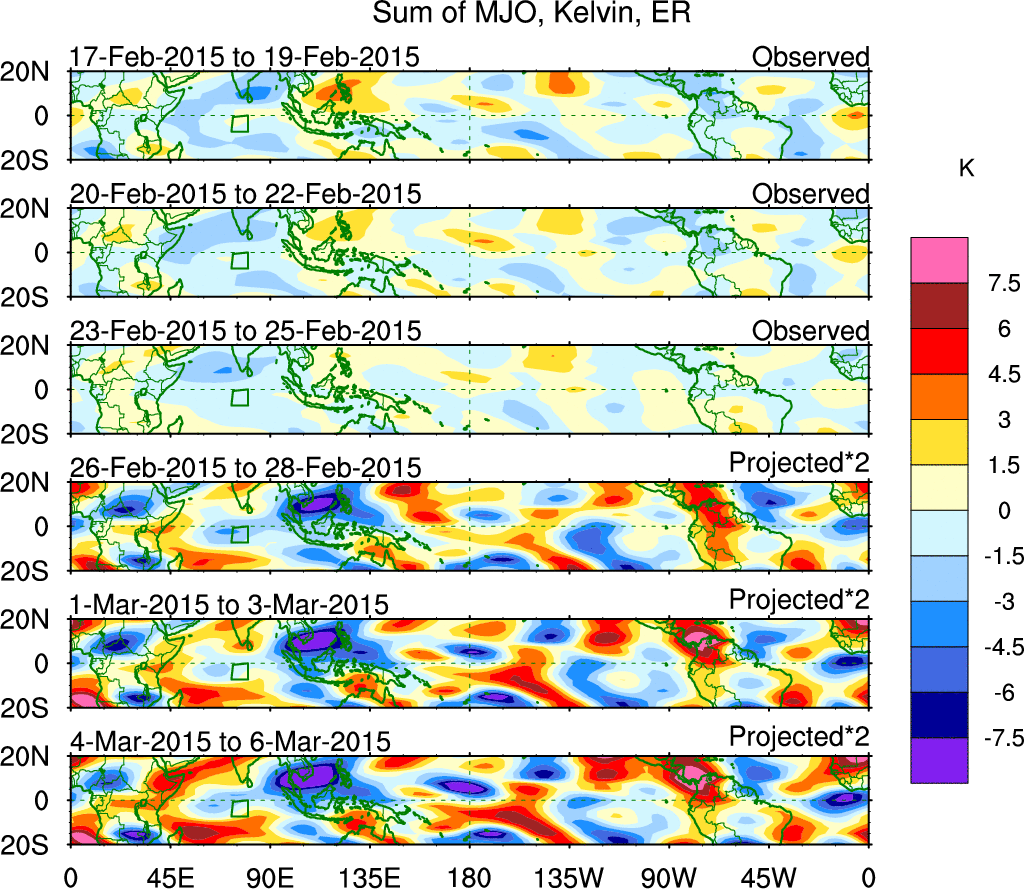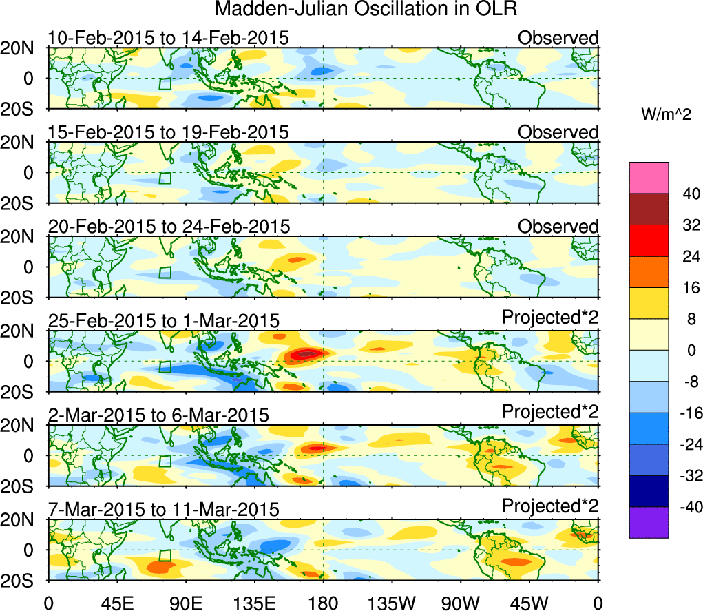 Julian Oscillation (MJO) Blue Eastward 0–9 30–96 n/a Kiladis et al. (2005 JAS)