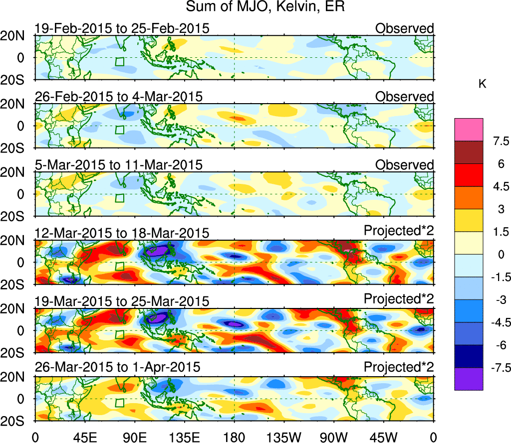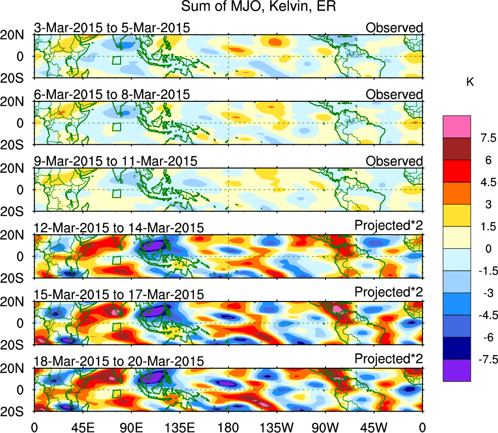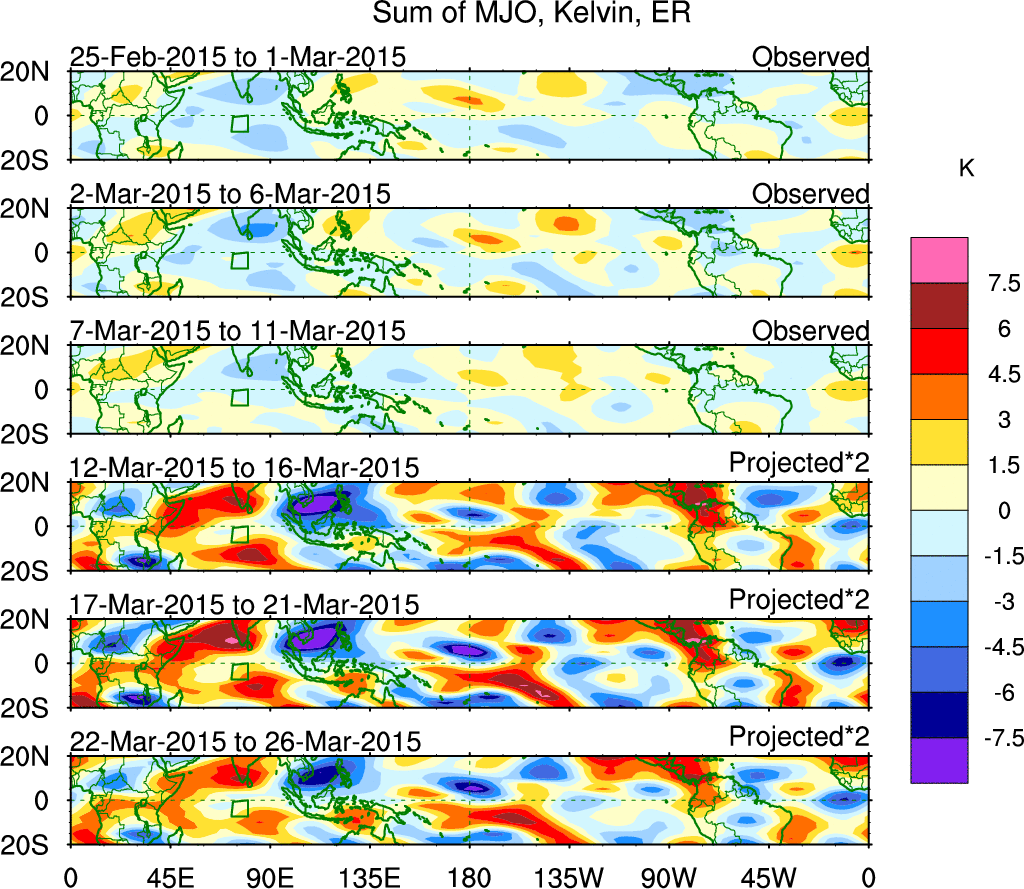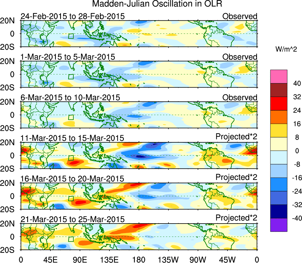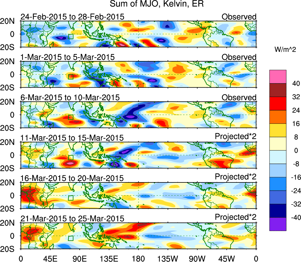Julian Oscillation (MJO) Blue Eastward 0–9 30–96 n/a Kiladis et al. (2005 JAS)