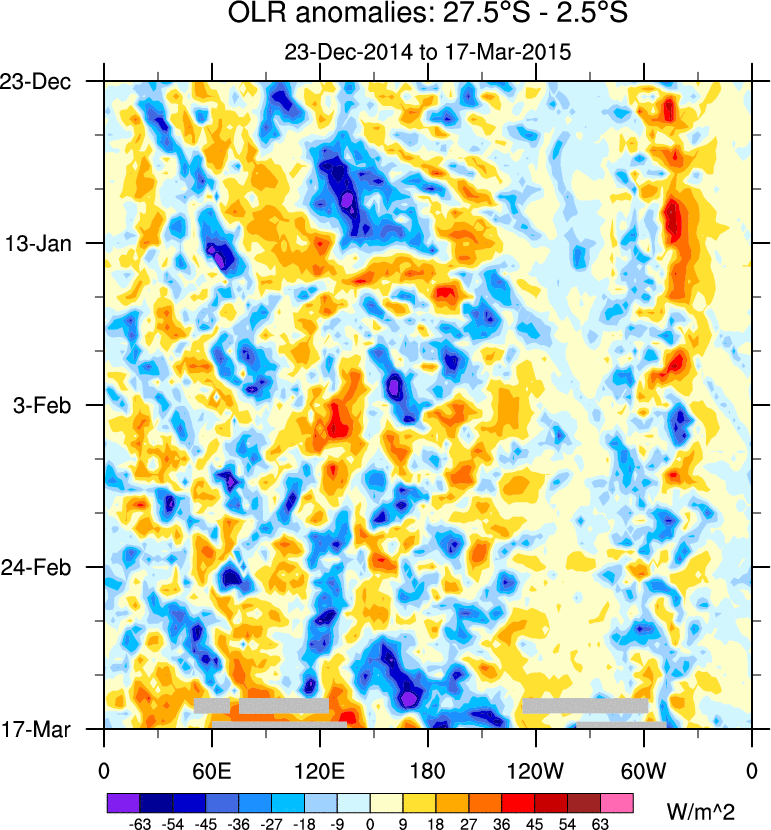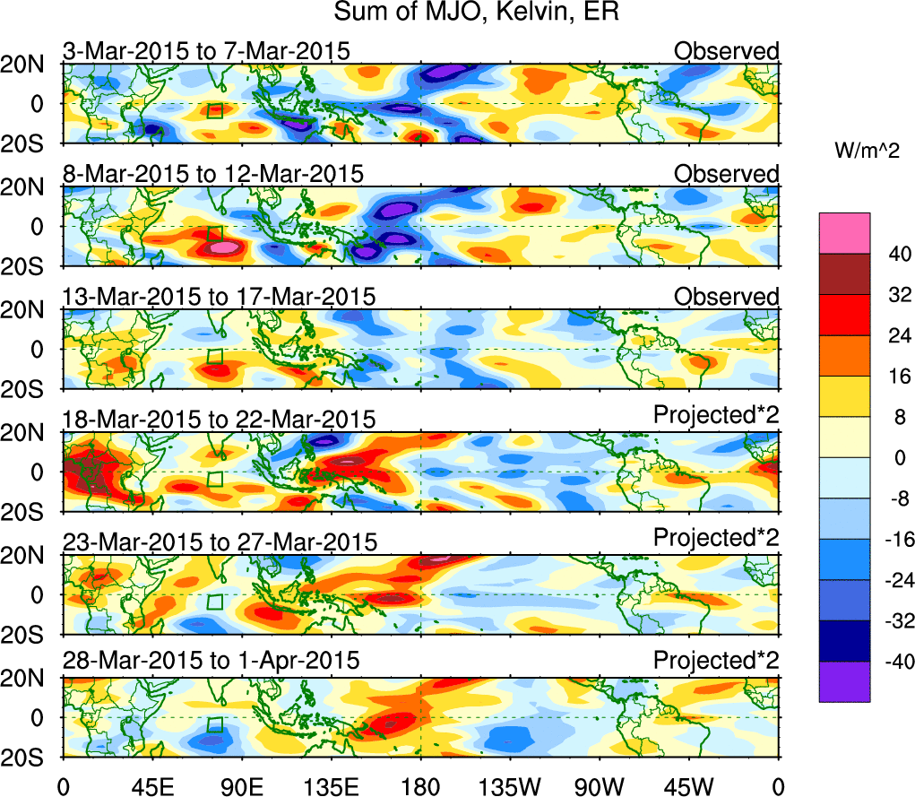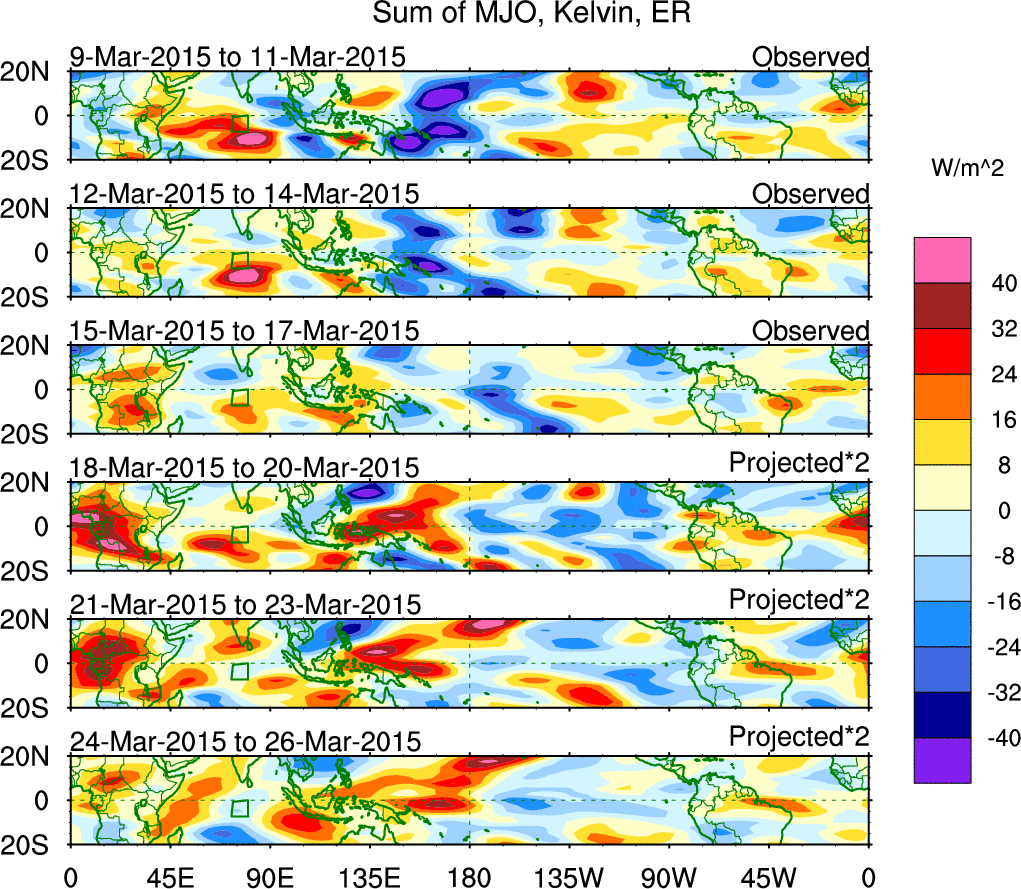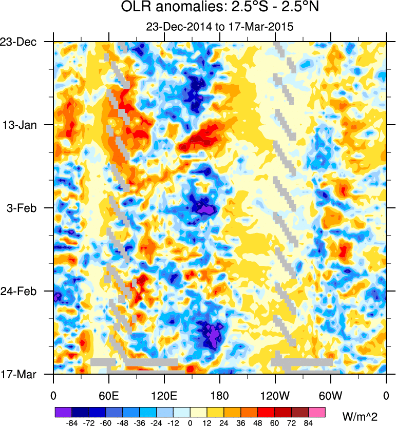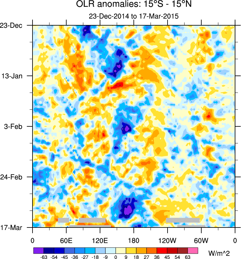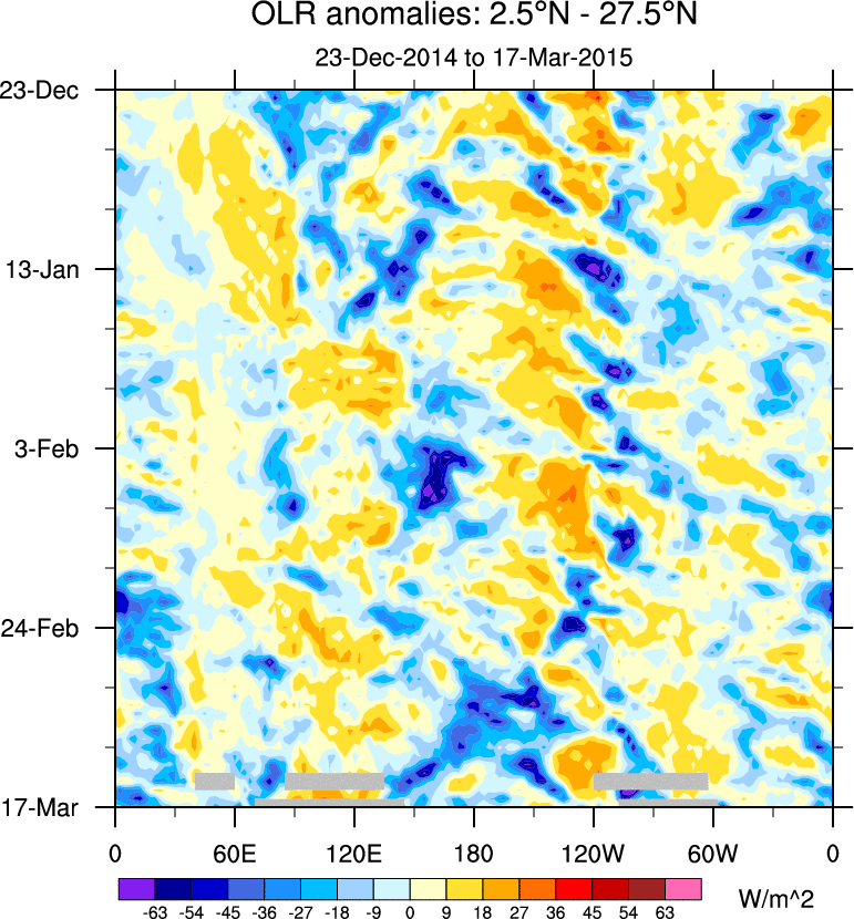 Julian Oscillation (MJO) Blue Eastward 0–9 30–96 n/a Kiladis et al. (2005 JAS)