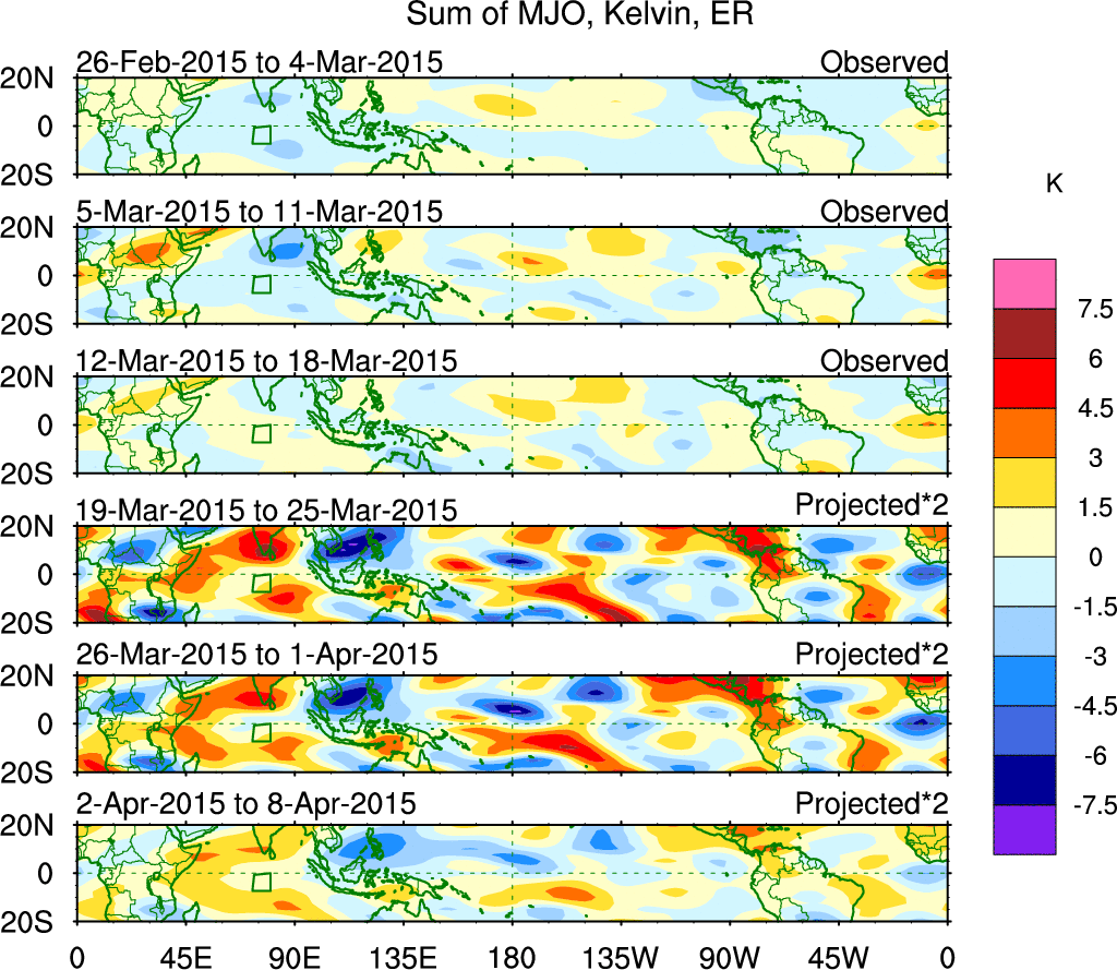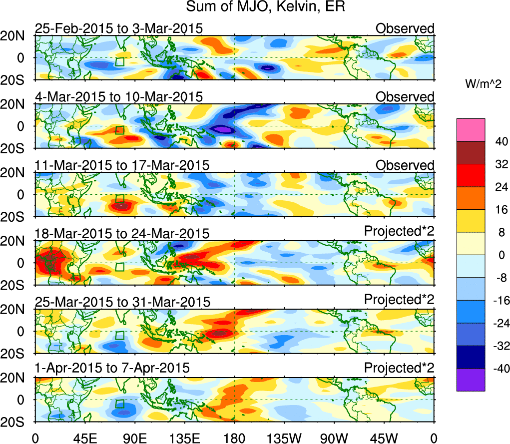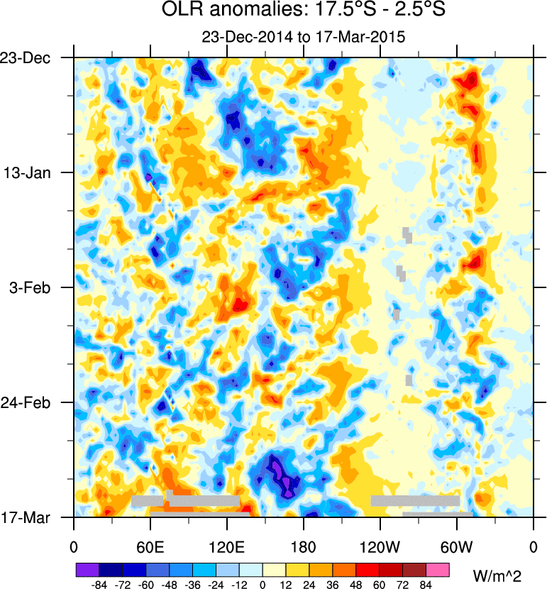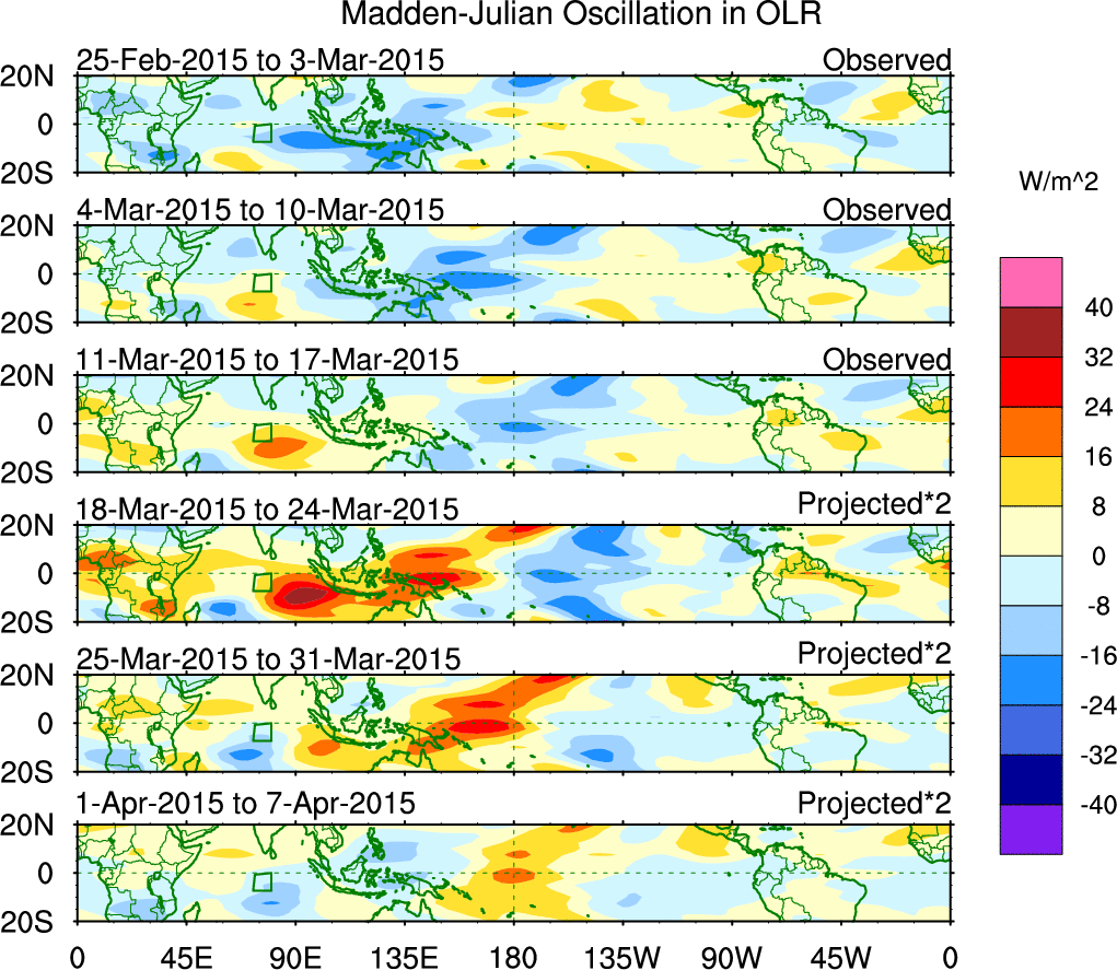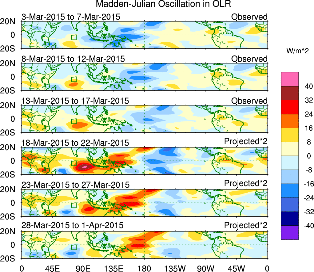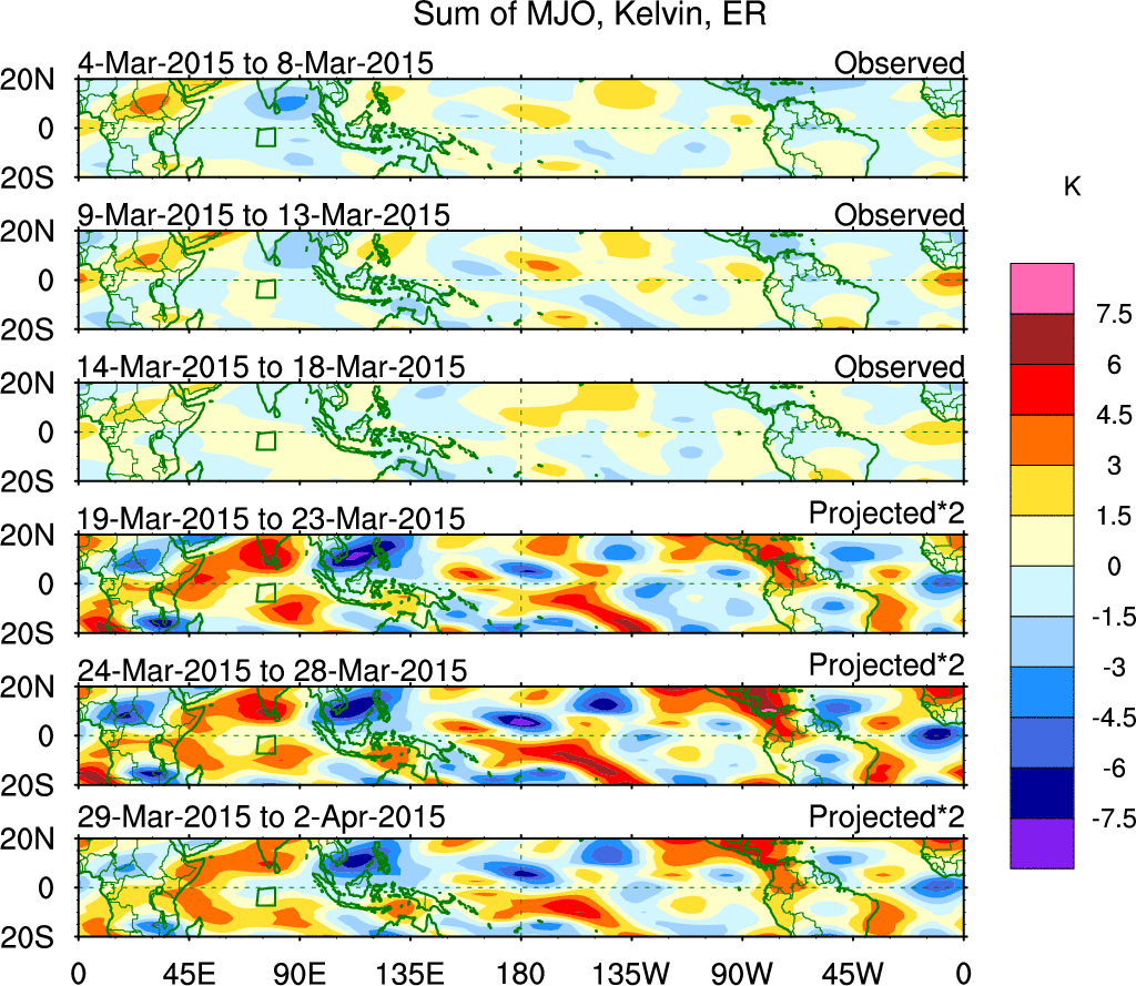 Julian Oscillation (MJO) Blue Eastward 0–9 30–96 n/a Kiladis et al. (2005 JAS)