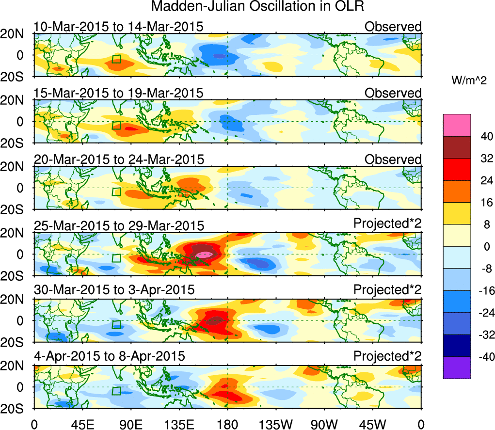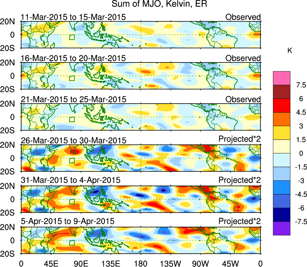 Julian Oscillation (MJO) Blue Eastward 0–9 30–96 n/a Kiladis et al. (2005 JAS)