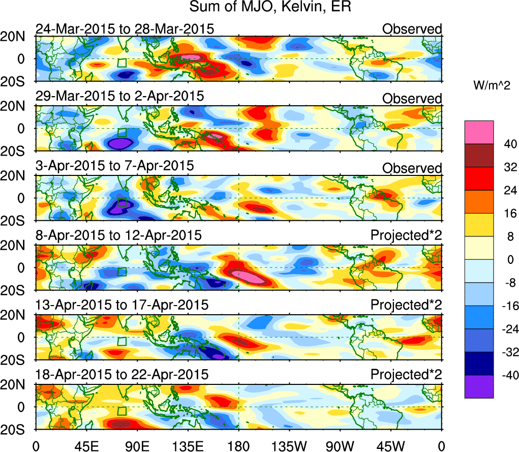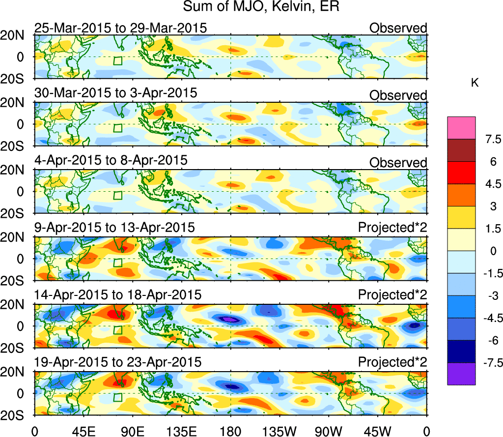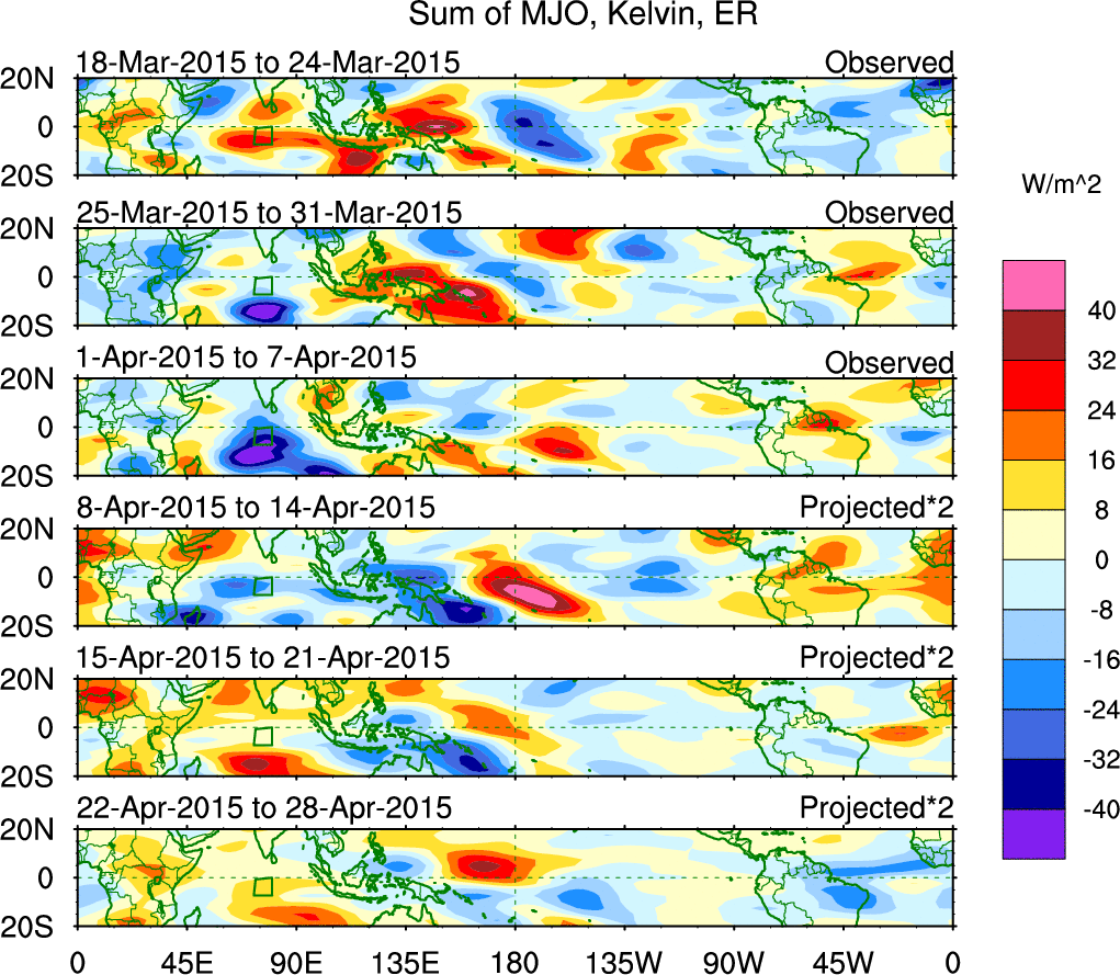 Julian Oscillation (MJO) Blue Eastward 0–9 30–96 n/a Kiladis et al. (2005 JAS)
