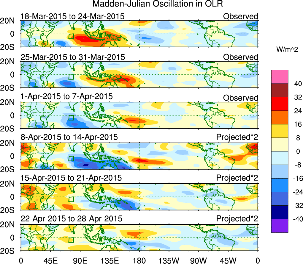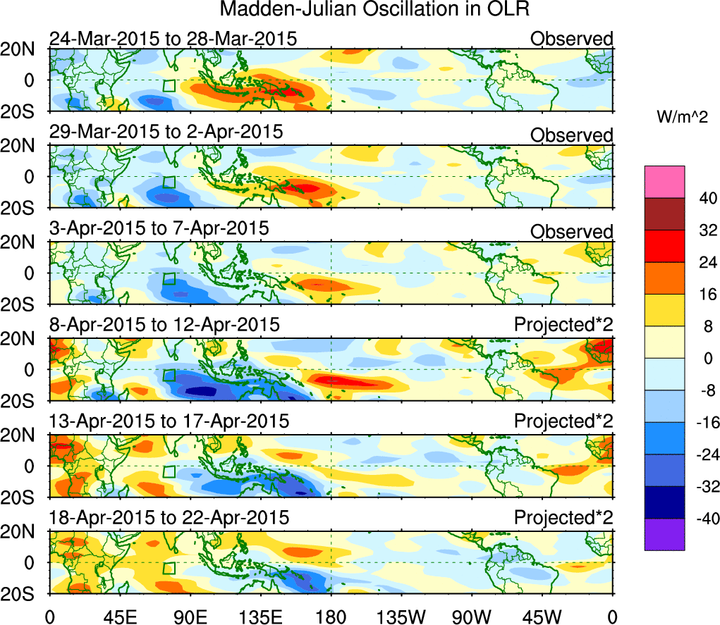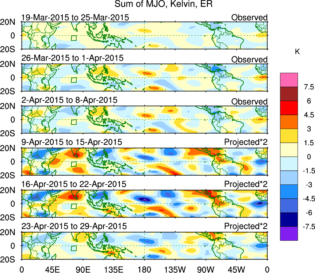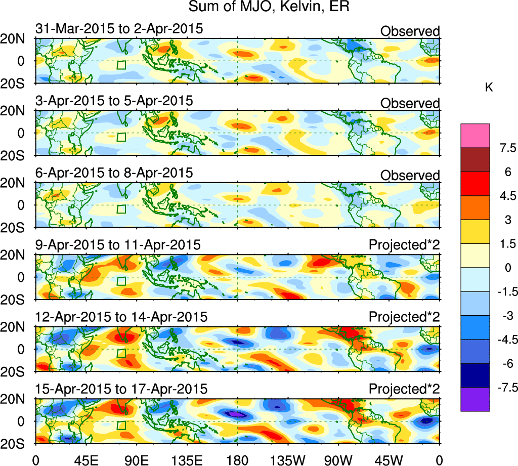 Julian Oscillation (MJO) Blue Eastward 0–9 30–96 n/a Kiladis et al. (2005 JAS)