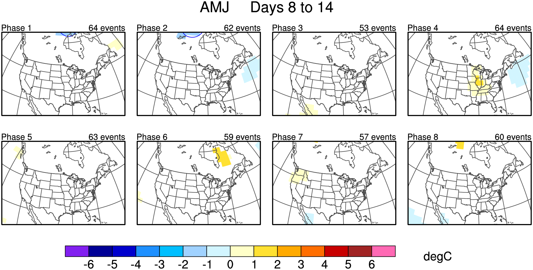 Maps of 500-hPa geopotential height anomalies (contoured every 30 m) and significant 850-hPa temperature anomalies, as shown in Schreck et al. (2013).