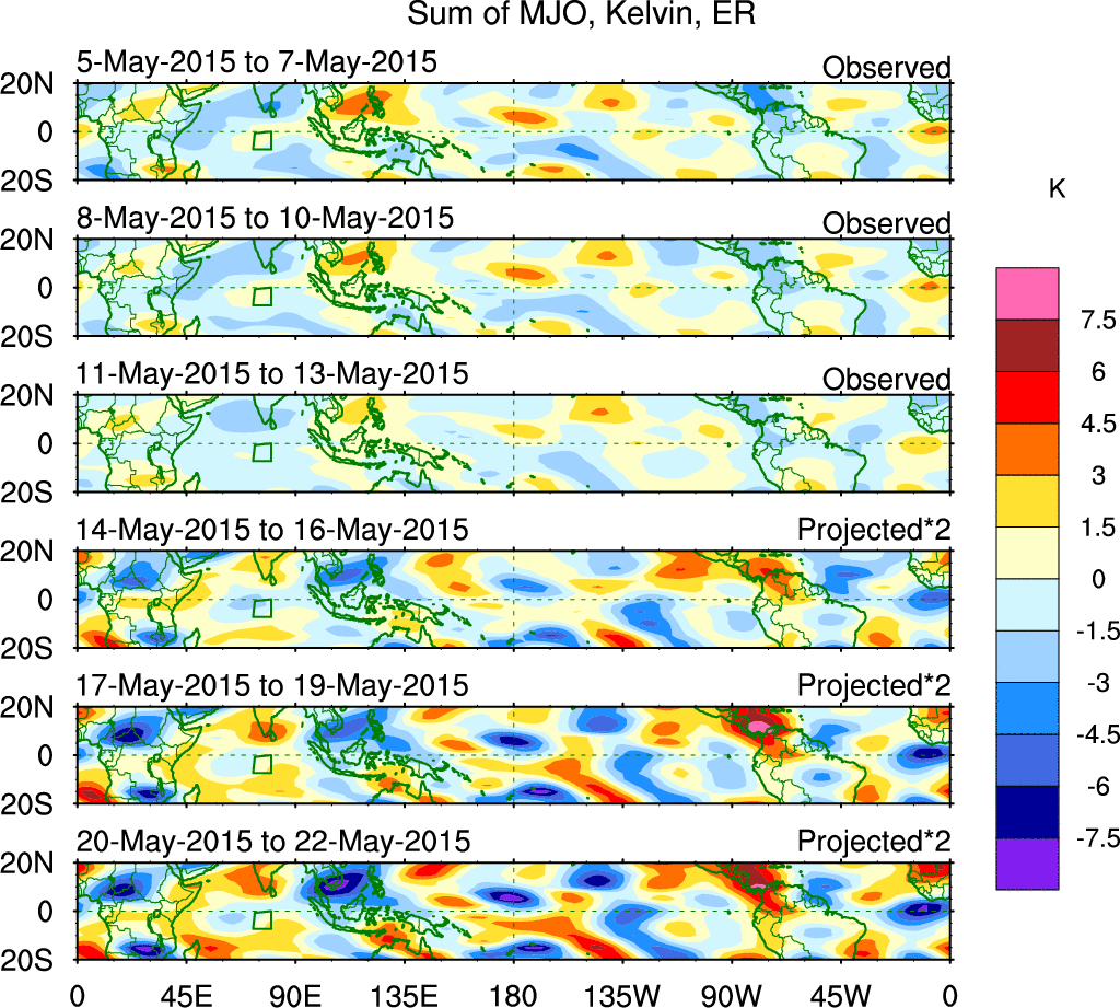 Julian Oscillation (MJO) Blue Eastward 0–9 30–96 n/a Kiladis et al. (2005 JAS)